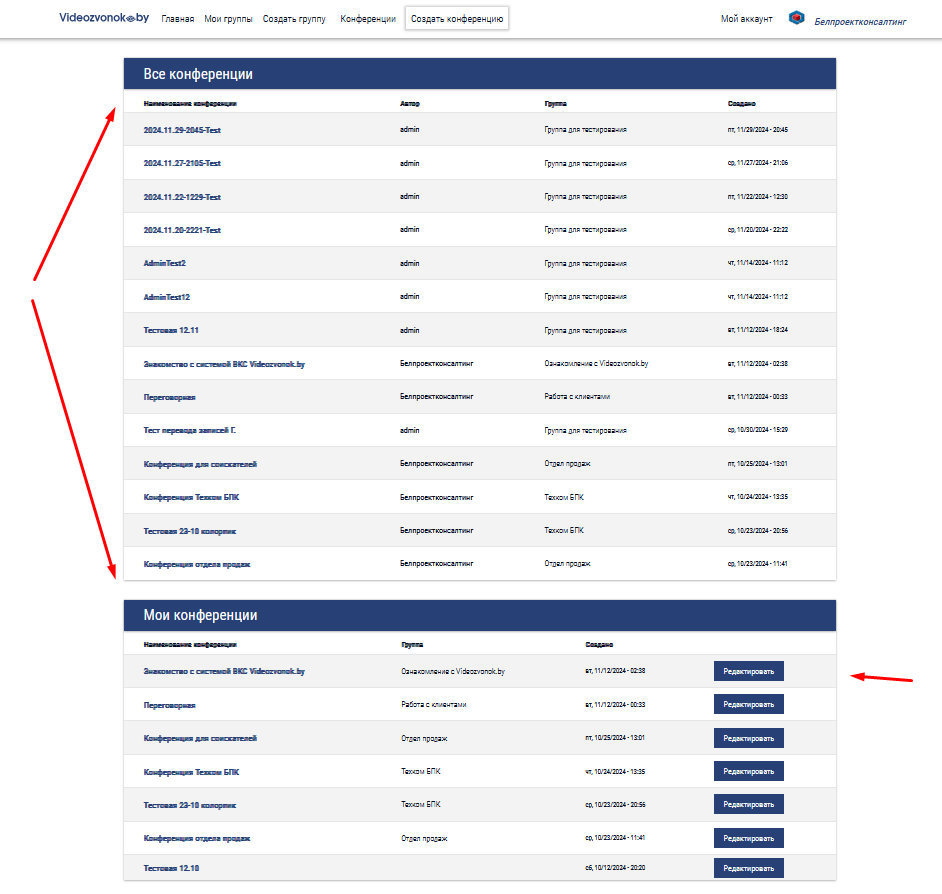 Так же появилась возможность редактировать конференции прямо из списка "моих конференций"